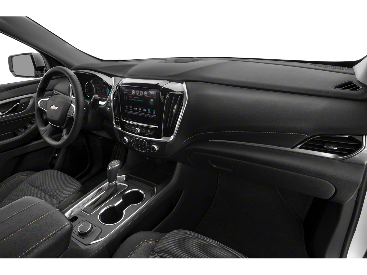 - Audio system, Chevrolet Infotainment 3 system 7" diagonal color touchscreen, AM/FM stereo. Additional features for compatible phones include: Bluetooth® audio streaming for 2 active devices, voice command pass-through to phone, Apple CarPlay and Android Auto capable (FWD only.)