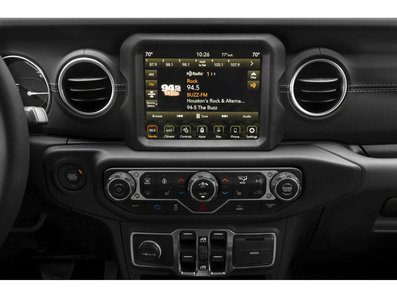 - Radio w/Seek-Scan, Clock, Speed Compensated Volume Control, Aux Audio Input Jack, Steering Wheel Controls, Voice Activation, Radio Data System and Uconnect External Memory Control